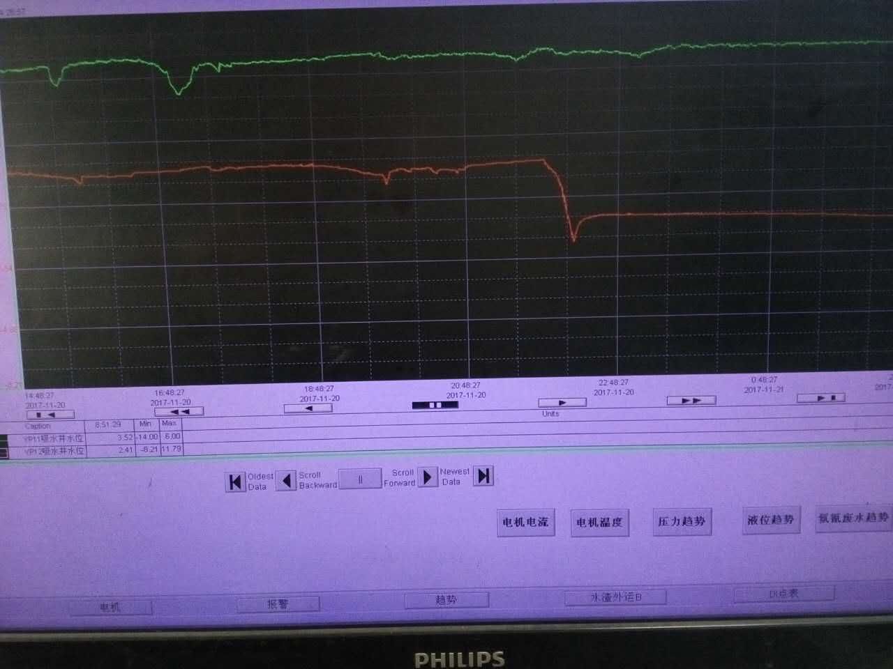 现场使用某品牌雷达料位计液位趋势图如上图所示